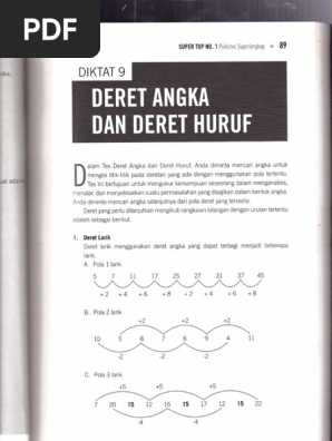 Soal deret sebenarnya ada 2 jenis yaitu deret angka dan deret huruf.