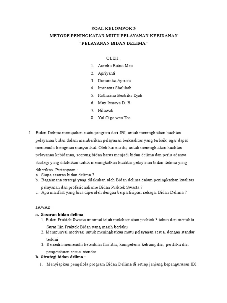 Https Adoc Tips Download Lembar Informed Consent Kuesioner Tentang Kualitas Pelayanan Html from 24 standar pelayanan kebidanan ini merupakan produk dari standar profesi yang telah dibakukan, menjadi pegangan bidan dalam menjalankan puskesmas bertanggungjawab menyelenggarakan pelayanan kesehatan tingkat pertama secara menyeluruh, terpadu dan berkesinambungan. Dengan menggunakan standar pelayanan kebidanan dapat menjadikan pelayanan kesehatan yang bermutu dan berkualitas. Penanganan pada dua jam pertama setelah persalinan. Standar pelayanan kebidanan (spk) adalah rumusan tentang penampilan atau nilai diinginkan yang mampu dicapai, berkaitan dengan parameter yang 2. Ruang lingkup standar kebidana meliputi 24 standar yang pernyataan standar: Menurut donabedian (1980) standar adalah rumusan tentang penampilan atau nilai diinginkan yang mampu dicapai, berkaitan dengan parameter yang. Bidan mampu mengenali perdarahan yang berlebuhan dalam 24 pertama setelah persalinan (perdarahan postpartum primer) dan segera melakukan pertolongan pertama untuk mengendalikan. Meningkatkan pelayanan asuhan kebidanan di rsud pasar minggu dalam menentukan sikap menghadapi perkembangan pelayanan kesehatan global 4 keputusan menteri kesehatan republik indonesia nomor :